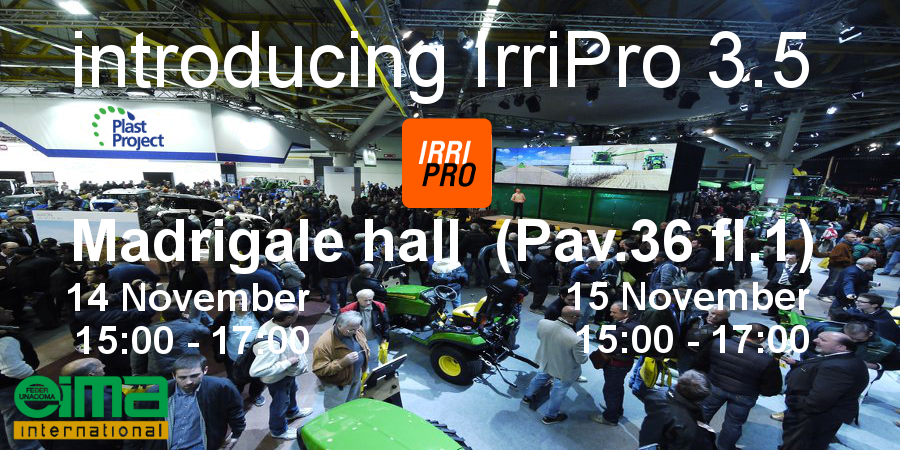 IrriPro 3.5 verrà presentato il 14 e 15 Novembre dalle 15 alle 17 nella Sala Madrigale.