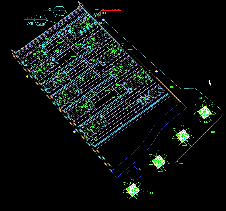 - le aiuole poste su terrazzamenti che scendono insieme alle scale tra la quota zero e quella a circa -5 m