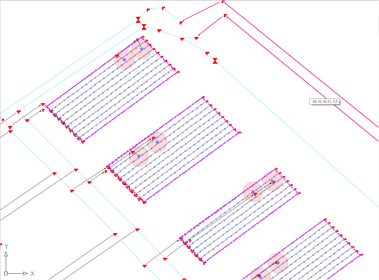 Le prime due aree sono alimentate da due sistemi di pompaggio posti a profondità differenti dove sono inseriti relativi sistemi di trattamento acqua. Sono state effettuate una serie di verifiche idrauliche necessarie a valutare il raggiungimento di livelli accettabili di uniformità, di efficienza e di qualità del servizio di irrigazione.